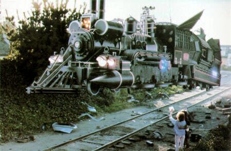 Fig. 8-11: Eksempler på Méliès-parafraser i og udenfor science fiction-genren. Billedserie: Voyages dans le Lune (1902) og Hugo (2011), Voyage à travers l’impossible (1904) og Back to the Future Part III (1990).