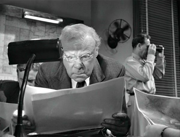 Fig. 13-14. Titelskiltet til Gordon Douglas’ Them! (1954) og den aldrende professor Medford, som udtrykker følgende tidstypiske bekymring: ”We may be witnesses to a Biblical prophesy come true.”