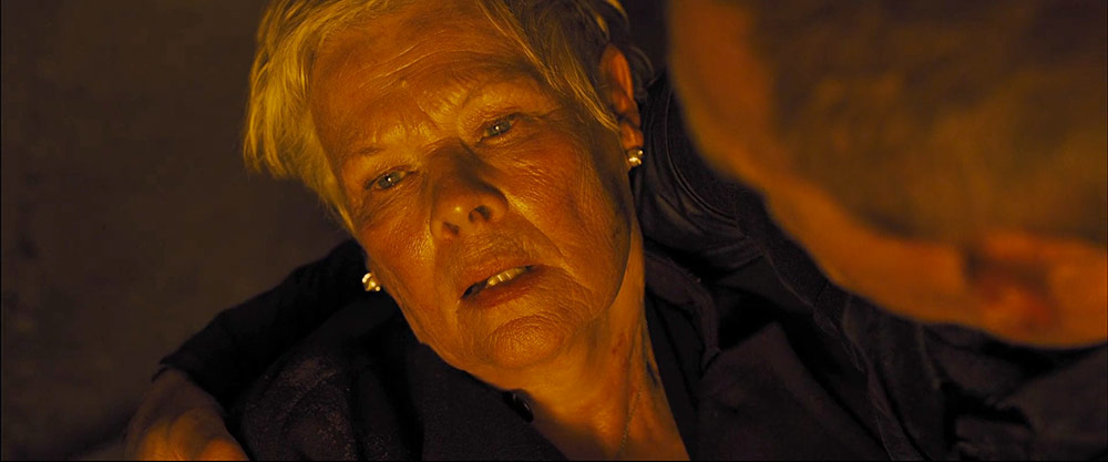 Denne erkendelse gennemsyrer ligeledes Skyfall, men det er ikke kun temaet, de to værker har tilfælles. Kig godt på den rødglødende orange, der er med til at give Turners billede sin melankolske, men også indtagende slagside og se så på det tredje billede herunder (fig. 3). Billedet er fra scenen, hvor M dør. Hun er om nogen selve symbolet på den institution, der i Skyfalls univers betragtes som anakronismen per se, MI6.