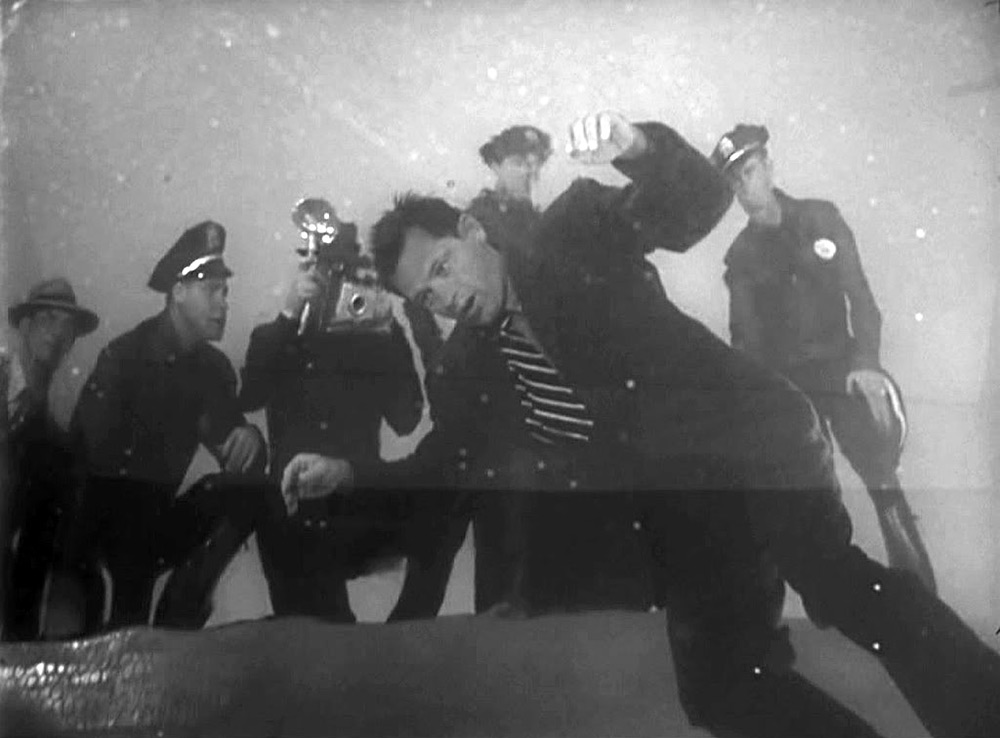 Få billeder, om nogen overhovedet, fra den klassiske film noir-periode indfanger som dette production still fra Double Indemnity (1944) af Neff i gaskammeret noir’ens højt besungne kynisme og desillusion og dermed det brud med den konventionelle Hollywoodfilms behagesyge, som film noir ofte ses som. Imidlertid blev hele den afsluttende henrettelsesscene skrottet i klipperummet. Det giver anledning til overvejelser om hvor markant Double Indemnitys brud med konform Hollywoodmainstream egentlig er.