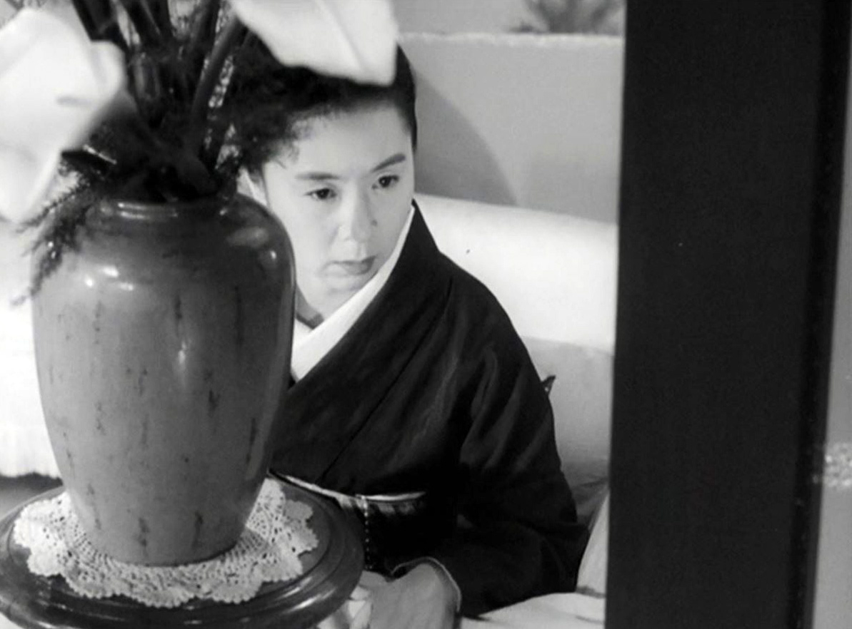 Hatsuko is the okami (mistress) of Izutsuya, a brothel in the Shimabara district of Kyoto which had been run by her family for generations (the status of the Izutsuya is both complex and unusual as it is not strictly an okiya (geisha house), or an ochaya (tea-house) – for an excellent and detailed explanation, see Le Fanu (2005, p.93)). Her daughter Yukiko (Kuga Yoshiko) was in Tokyo, but is brought home after a failed relationship and apparent suicide attempt. Hatsuko requests that her daughter is examined by the novice but trusted Dr. Matoba, who, despite questions, gets very little information from Yukiko. In a later conversation between Matoba and Yukiko we learn that the reason behind her relationship breakdown was due to her connection with Izutsuya and the activities therein. When Matoba informs Hatsuko about this, she is both shocked and saddened that her business and the profession of her recent ancestors have caused these problems for Yukiko. Hoping to finance a local practice for Dr. Matoba, it is revealed that Hatsuko has been saving money to buy the surgery and become his wife. Problems begin to occur however as Hatsuko already has a suitor, Harada (Shindo Eitaro). However, for Hatsuko a marriage to Harada is not a possibility as we witness devotion and at times blind obsession with Matoba. The following scene adds to this uncomfortable element of the picture.