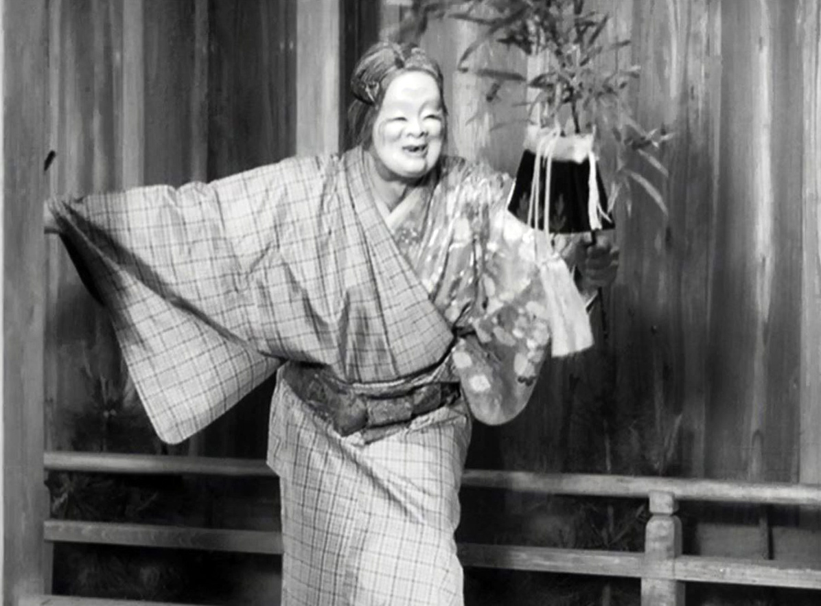 Mizoguchi’s follow up film Uwasa no Onna is remarkably different in terms of setting and style. The drama takes place in a Japan where modernity and tradition, represented not only through the mise en scène but also through the characters, sit uncomfortably side-by-side. This friction is exacerbated through the film’s lead character Hatsuko (Tanaka Kinuyo), a lonely woman in search of love and companionship with the family doctor Matoba (Otani Tomoemon). The film, which is often ignored in favour of the more well-known Mizoguchi works of the period, is a complex melodrama, which reaches its apotheosis during one excruciating scene. Set in a noh theatre, we witness a moment of peripeteia as Hatsuko finally realises the dire situation that she finds herself in. Mizoguchi relies on an audience’s knowledge of noh’s cultural sensibilities, which help to provide an emotional counterpoint to the human drama. We will go on to analyse a key scene set in a theatre, but first, let us contextualise the scene.