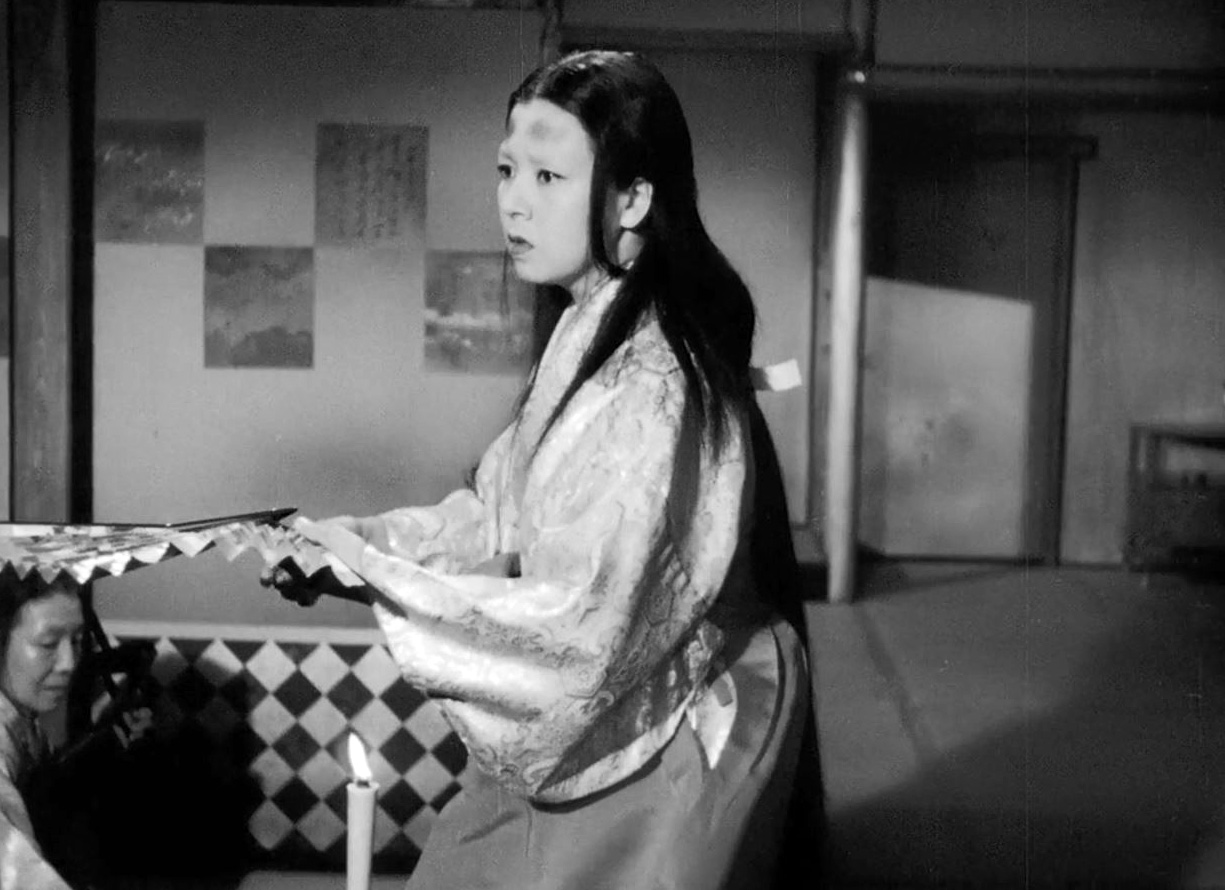 Initially, the two films seem remarkably different. Ugetsu is set during the war-torn Sengoku period (1467-1600) and is essentially two stories; one a period drama, and the other an erotic supernatural tale. In contrast, Uwasa no Onna is a contemporary family melodrama where, unlike Ugetsu, sexual desire is expressed through the confined strictures and claustrophobic setting of post-war Japanese society. However, despite these unmistakeable differences, there still exists a strong bond between the films through their substantial reliance on traditional Japanese motifs. This is seen most notably through the director’s use of noh theatre as both a stylistic and narrative device, employed to prompt a specific reaction from his audience.