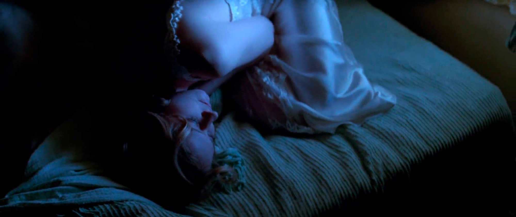 I en anden scene klippes der fra et nærbillede af soldaten Bell (Ben Chaplin) til en af de mange scener, hvor han mindes de romantiske stunder hjemmefra med sin kone (fig. 6), men denne gang er det ikke Bells stemme, der akkompagnerer billederne, men derimod Trains. Det skaber forvirring om, hvad disse billeder helt nøjagtigt fortæller. Ligesom filmens voice-overs bidrager de ikke til helheden, og de skaber ikke noget psykologisk portræt af Bell og længslen efter at komme hjem til den elskede, da scenerne bærer mere præg af at være poetiske digressioner.