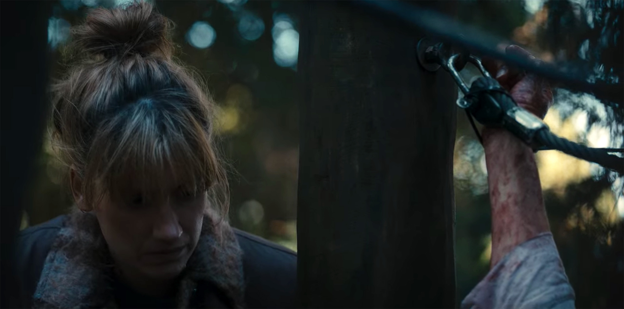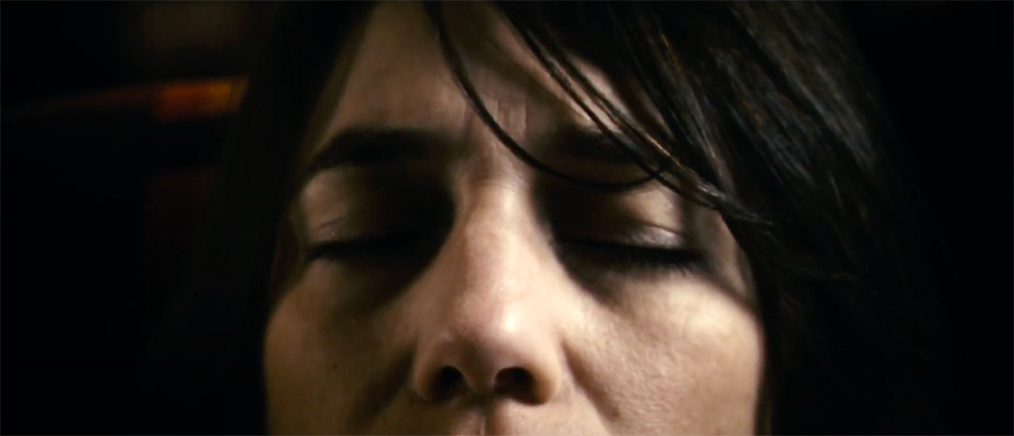 KEA: Jeg vil næsten ikke sige det fordi det er den jeg altid bliver spurgt om, men Antichrist er jeg meget stolt af. Fordi det var kulminationen af alt det arbejde jeg havde lavet i mit liv indtil da. Jeg brugte alle de teknikker jeg har brugt og fyrede den max af. Vi brugte et halvt år på at sidde og finde de her lyde. Det kunne være hypnose-scenen hvor hun bliver talt tilbage til hytten (fig. 10).