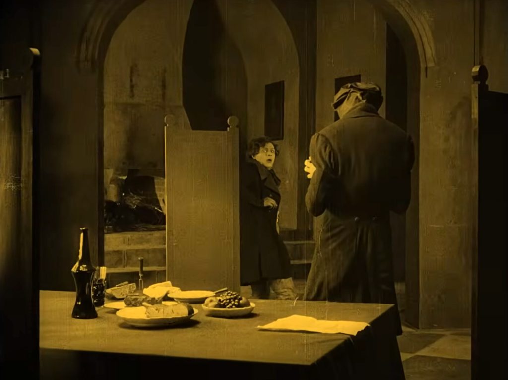 Hans skygge har sit eget liv og mod slutningen af filmen, ser vi den fri fra sin mesters krop som et enormt monster, der nærmer sig Ellens sovekammer, som han angriber i nattens mulm og mørke, da skyggen griber fast om hendes hjerte (fig. 1).
